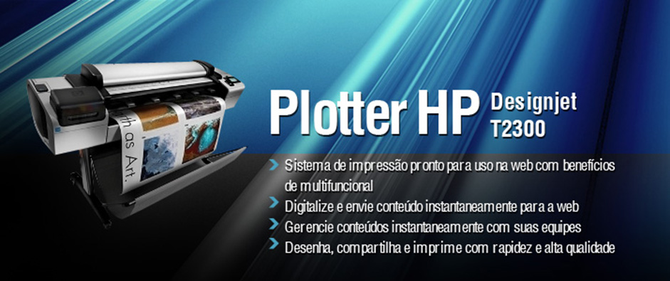 O Plotter HP Designjet T2300 eMFP é o primeiro sistema de impressão pronto para uso na web com benefícios de um multifuncional, que veio para proporcionar melhor eficácia no desenvolvimento de seus projetos.